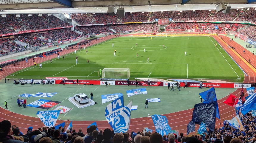 von mir beschafften Plätzen im Oberrang der Südkurve ein. Direkt