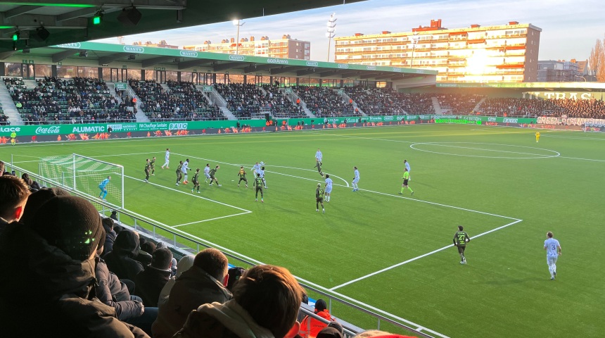 freien Plätze in der Stadionecke verziehen würde. Von dort aus