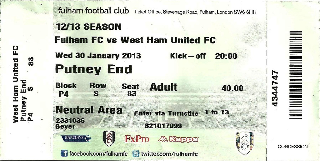 Fulham FC vs. West Ham United 3:1 (1:0) |