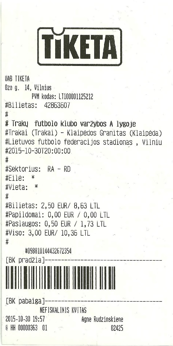 und entspannte ein wenig in meinem Hotel im Westen der Hauptstadt. Als ich das Hotel um sieben verließ war es arschkalt geworden. Während ich in der Mittagssonne die Winter- gegen meine Sommerjacke tauschte, war die Winterjacke nun mehr als angebracht. Nachdem ich vor den Stadiontoren einige Minuten warten musste, öffneten diese eine Dreiviertelstunde vor Spielbeginn. Vor dem Eintreten musste man sich jedoch ein Ticket in Form eines Kassenbons aus einem Auto heraus kaufen. Ich ringe mit mir, ob diese Variante außergewöhnlicher ist als der Ticketverkauf aus einer Alditüte in Skopje. Ich war (mal wieder) der erste Fan im Stadion und es sollten sich auch nur weitere gut 150 Interessierte die Erstligapartie zwischen Trakai und Granitas angucken wollen. Wahrscheinlich lief im TV gleichzeitig Basketball. Auf dem auswärtigen Terrain waren die Gastgeber als EL-Quali-Teilnehmer stark favorisiert und nahmen das Heft von Beginn an in die Hand. Auf viele Unzulänglichkeiten im Aufbauspiel in der Anfangsphase folgte nach 20 Minuten das verdiente 1:0 für den FK Trakai. Im Anschluss an eine gute Kombination konnte Valskis den Keeper der Gäste, der den Ball noch leicht berührte, überwinden. Acht Minuten später folgte bereits das 2:0 nach einem eigentlich ungefährlichen Freistoß, dessen Abpraller jedoch der armenische Stürmer Arshakyan aus leicht abseitsverdächtiger Position verwertete. Da Granitas den Hausherren hier wenig entgegensetzen konnte, war die Partie damit mehr oder weniger entschieden und ich ließ die zweite Hälfte bibbernd an mir vorbeiziehen. Immer wieder lief ich durch den Block um nicht anzufrieren und konnte dabei die ca. 20 Trakai-Fans neben mir bewundern, die trotz Eiseskälte Spaß dabei hatten, den sowieso komplett verunsicherten Gegner mit Buh-Rufen bei nahezu jedem Ballkontakt aus dem Konzept zu bringen. Nachdem der Granitas-Keeper einen Arshakyan-Schuss zuerst noch abwehren konnte, nutzte die Nummer 10 den abprallenden Ball zum 3:0 (51.). Ich schaute mir die nun vor sich hinplätschernde Partie tapfer bis zum Ende an und war froh, als ich nach einem kurzen Fußmarsch mein warmes Hotelzimmer erreichte um Kraft und Schlaf für den morgigen Tag zu tanken. |