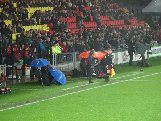 aufgrund der fragwürdigen Tribünenkonstruktion komplett nass. Irgendwie