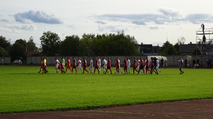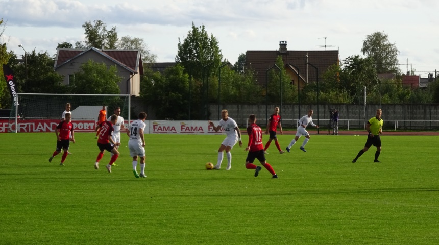 Vor dem Spiel der „Meisterliga“ duellierte sich bereits am Nachmittag eine Mannschaft aus estnischen Legenden mit der Traditionself von Zenit St. Petersburg. Dementsprechend herrschte bei bestem Wetter eine stattliche Volksfeststimmung samt Hüpfburg und Tretauto-Verleih. Insgesamt kauften gut 1.000 Zuschauer Tickets für das Doppelevent, das nun mit dem Spiel zwischen den beiden Qualifikationsteilnehmer zum Europapokal fortgesetzt wurde. Dabei konntenn die Gäste ihrer Favoritenrolle gerecht werden und setzten die harmlosen Hausherren unter Druck. Kurz vor der Pause zappelte der Ball nach einer Ecke im Tor der Grenzstädter. Der Referee sah jedoch den Schubser des Angreifers, der dem Treffer vorausging. So verpasste ich durch einen Toilettengang kurz nach der Pause das einzige Tor des Tages (54.). Wieder ein - diesmal regelkonformer - Kopfball nach einer Ecke. An Chancen auf beiden Seiten mangelte es im Anschluss nicht mehr. So gab es einige Situationen in den sich die heimischen Fans die Haare rauften, wenn mal wieder eine Möglichkeit fahrlässig liegen blieb. Spätestens jetzt wurde mir klar, warum Trans Narva in diesem Jahr zum siebten Mal seit 2009 in der Europa League-Quali startete und stets deutlich in der ersten Runde scheiterte. Für uns ging es im Anschluss durch die Nacht zurück in die Hauptstadt.